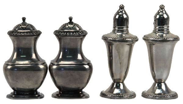 TWO SETS STERLING SILVER SALT AND PEPPER SHAKERS