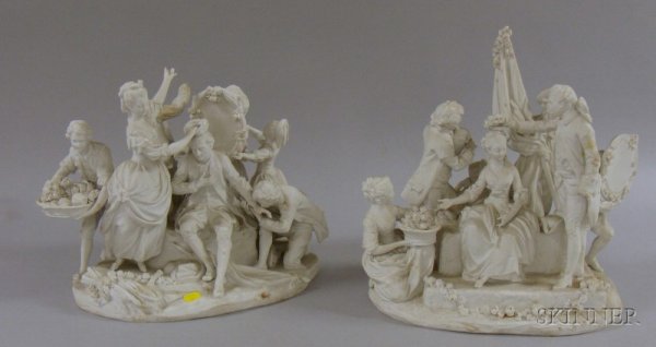 Two Sevres-type Bisque Figural Groups, impressed m