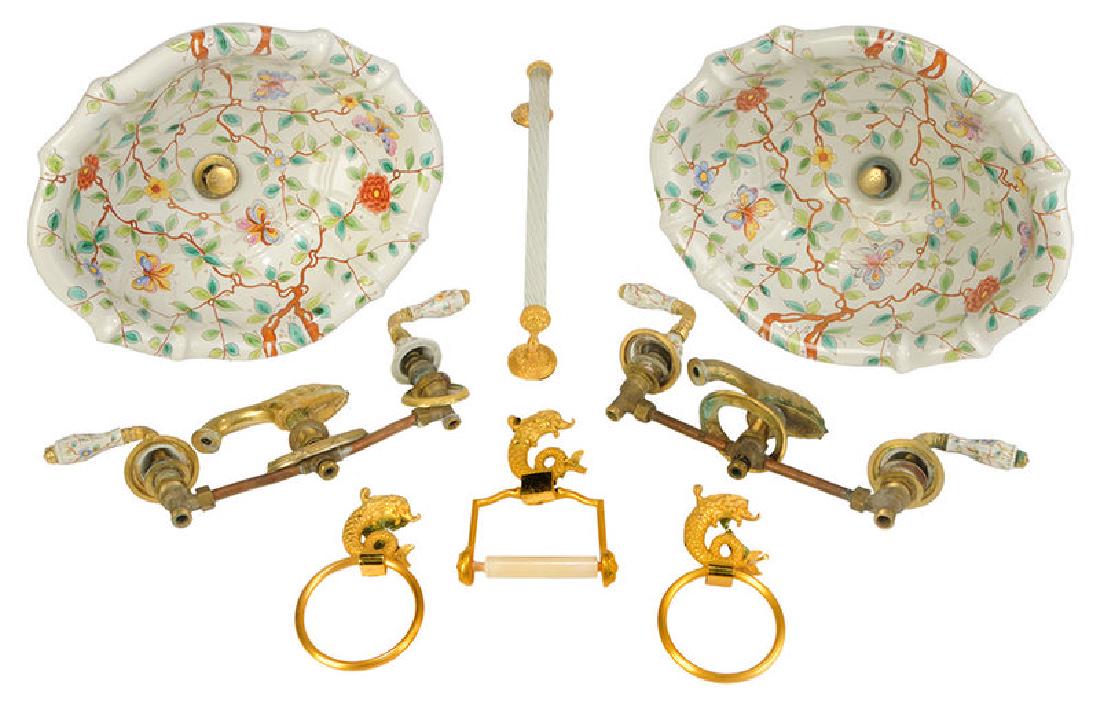 Two Sherle Wagner Basins with Accessories