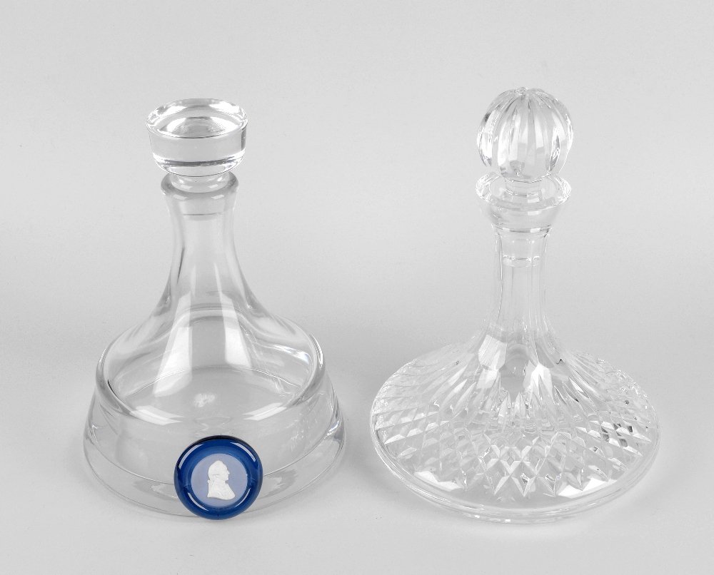 Two ship's glass decanters, etc.