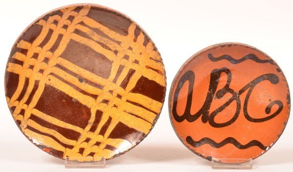 SoldTwo Pennsylvania Slip-Decorated Redware PlatesTwo Pennsylvania slip-decorated redware pottery plates. Larger: 8in diameter. | Philadelphia Metro area delivery, NYC curbside delivery, and international third-party shipper information are all availSee Sold Price