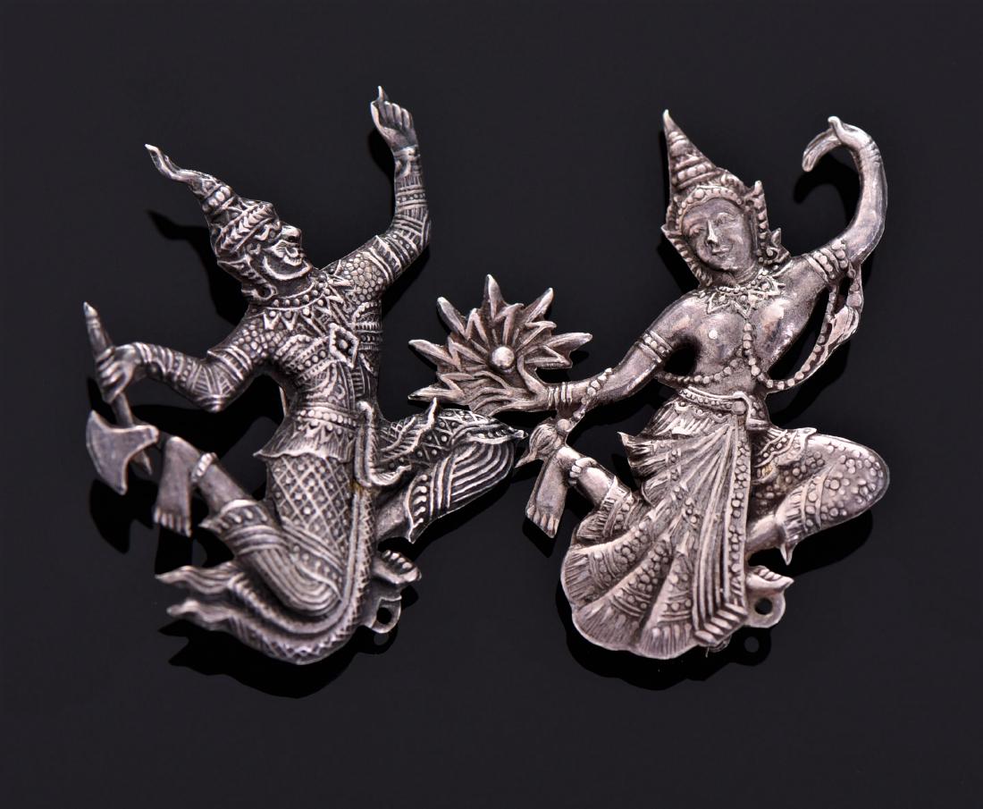 Two Siam Sterling Silver Warrior Brooches. Silver