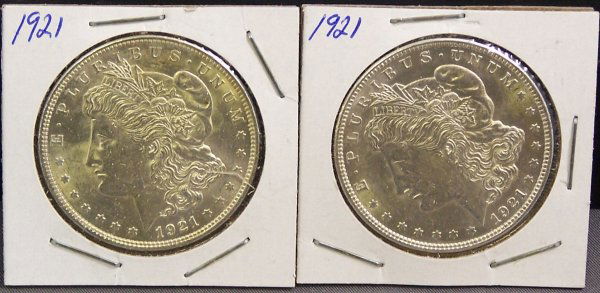 TWO SILVER MORGAN DOLLARS 1921'S