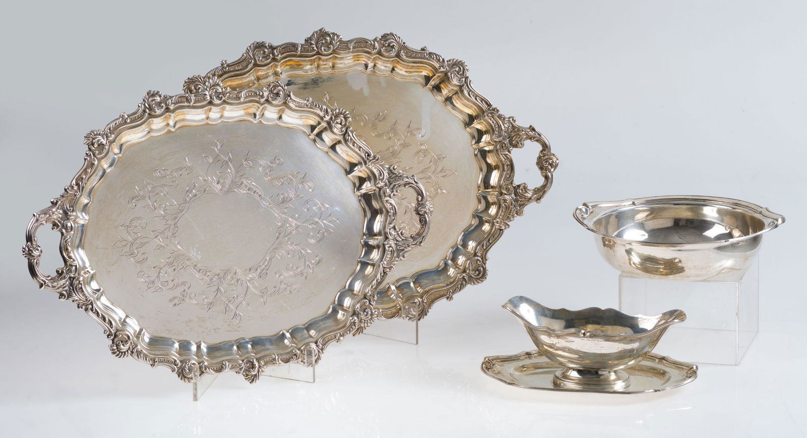 Lot Silver Plate Trays5 days LeftLot Silver Plate Items5 days Left20PC LOT OF STERLING SILVER ITEMS, 44.3 T.O.W.Mar 07, 2026ASSORTED SILVER-PLATED AND OTHER ARTICLES, LOT OF SEVEN5 days LeftReed & Barton, Etc. Silver Plate Tableware, 10 PcsMar 12, 2026Small 800 Silver Double Handled TrayMar 11, 2026Grouping of Six Silverplate Serving Trays, 20th CenturyMar 07, 2026Silver Classical Ewer & Two ChargersMar 19, 2026Two Circular 800 and 830 Silver TraysMar 11, 2026Grouping of Six Silver Plate Serving TraysMar 07, 2026Six English & American Silver Table ArticlesMar 13, 2026Continental Silver Oval TrayMar 11, 2026William Adams, Etc. Silver Plate Tableware, 8 Pcs.Mar 12, 20262 sterling silver reticulated baskets. Each with relief cherubic scenes, rose garlands and baskets,2 days LeftGroup of 6 Silverplate Tableware Pieces5 days Left(7) American Sterling Silver Footed Bowl, Trays, & Vide-PochesMar 19, 2026