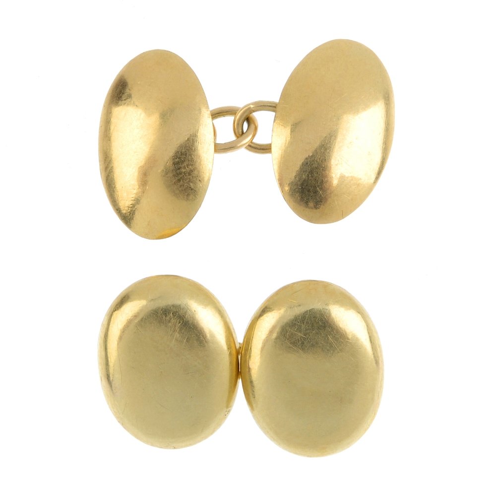 Two single cufflinks. Each designed as two oval-shape