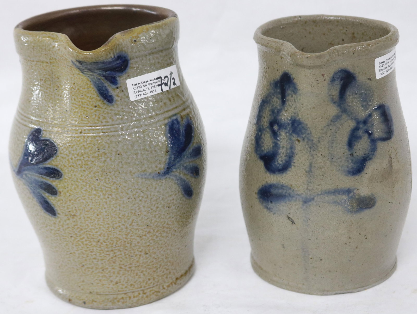 TWO SMALL 19TH C. STONEWARE HANDLED PITCHERS WITH