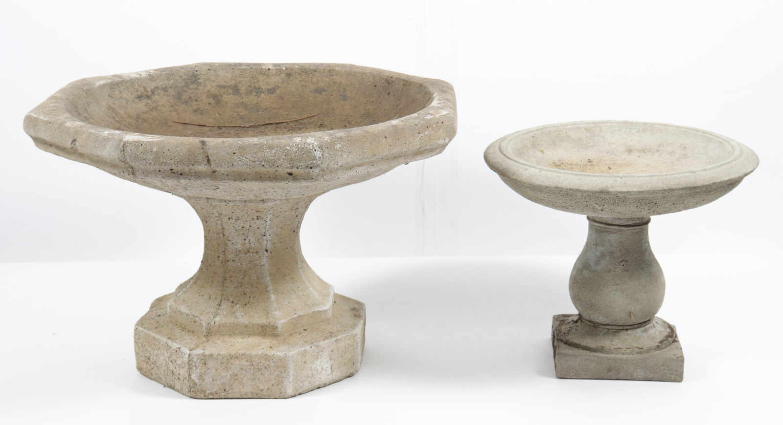 Two Small Modern Cast Cement Birdbaths