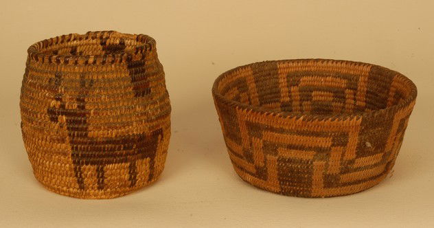 TWO SMALL NATIVE AMERICAN BASKETS, c. 1900. One Pi