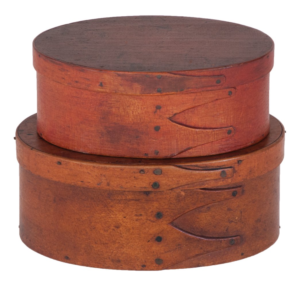TWO SMALL OVAL BOXES Maple and pine, original red