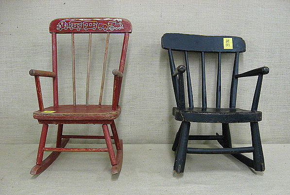 Two small rocking chairs black and red