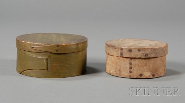 Two Small Round Painted Lapped-seam Covered Boxes, A