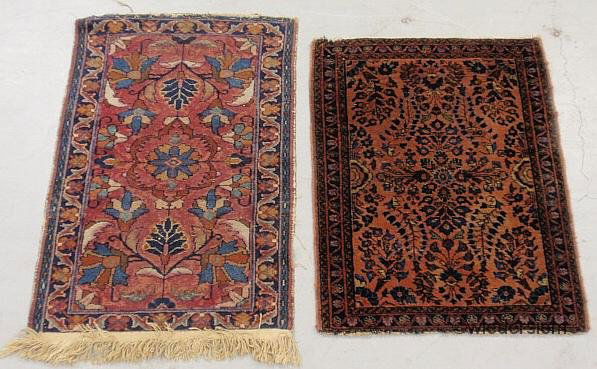 Two small Sarouk oriental throw mats, largest 2’9”x1