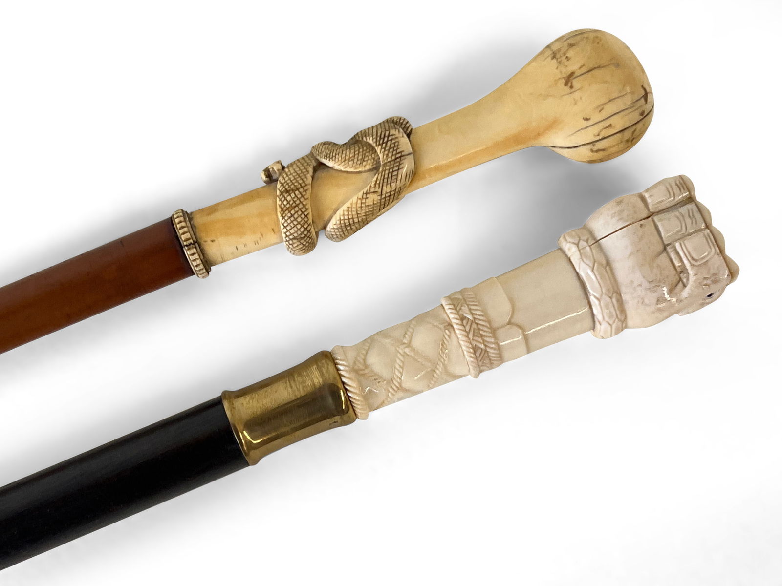Two Snake Carved Canes