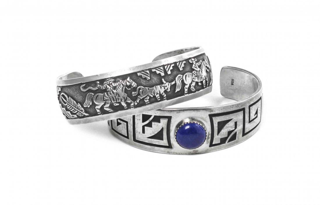 Two Southwestern Sterling Silver Cuff Bracelets,
