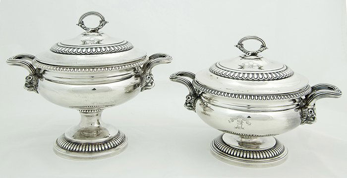A Pair of Regency Sterling Silver Soup Tureens and Covers,