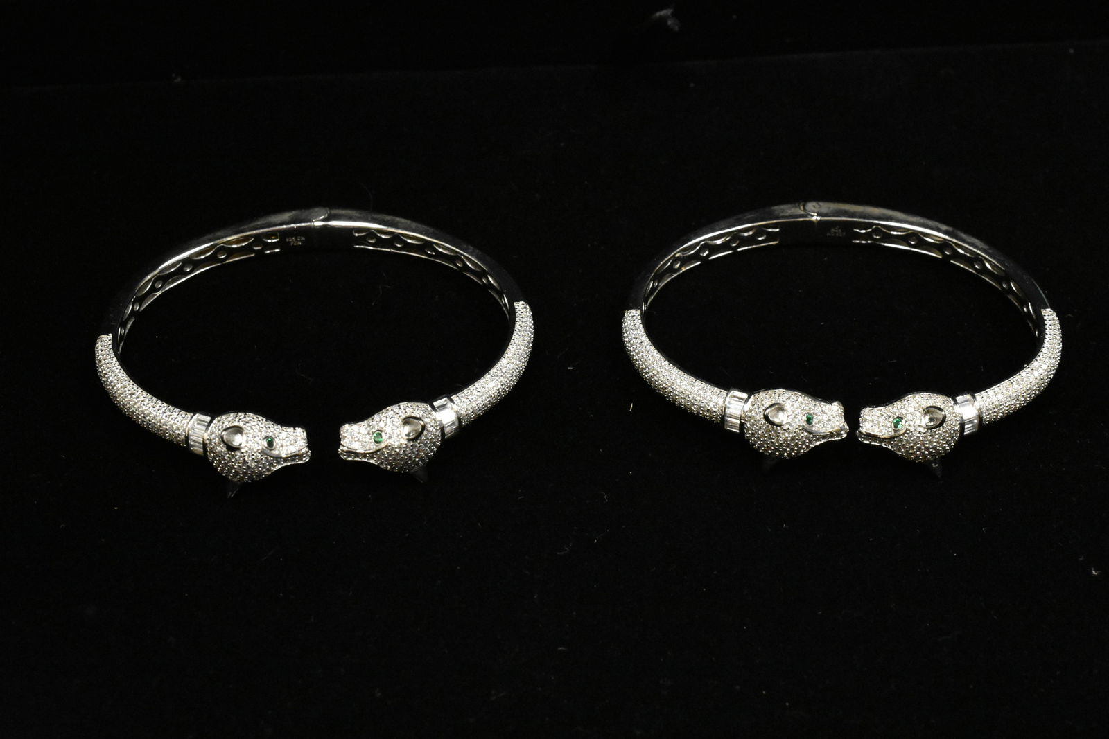 Two Sterling Panther Head Cuff Bracelets