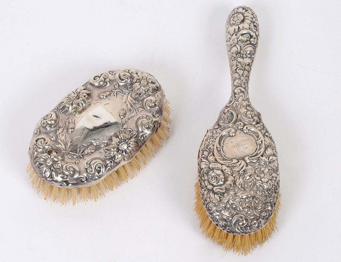 TWO STERLING SILVER REPOUSSE BRUSHES