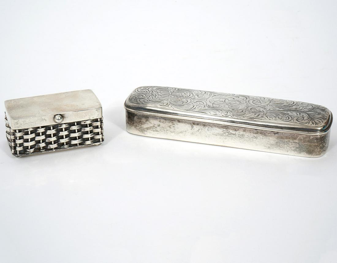 Lot of Two Sterling Dishes with Repousse-WorkFeb 08, 2026A lot of two silver and guilloché-enamel decorated cigarette and snuff boxesFeb 24, 2026Two German Silver Boxes13 hrs Left(2) ART DECO STERLING CIGARETTE CASESFeb 20, 2026Two Silver Plated Cigarette Boxes, One Engraved for Marylou WhitneyFeb 11, 20263 Chinese Export Silver Dragon Boxes3 days LeftTwo Dutch Silver Dresser BoxesFeb 06, 2026Fine 3 Piece English Dutch Sterling Silver Box Collection 19004 days LeftTwo Shan Burmese Silver Betel BoxesFeb 12, 2026William Spratling Sterling Covered Box, ca. 1940Feb 19, 20264 Silver Jewelry Boxes incl. Japanese and Heintz Art Metal5 days LeftSILVER BOX WITH UNKNOWN PART FOR PACKING5 days Left(3) SMALL SILVER MOUNTED BOXESFeb 20, 2026THAI REPOUSSÉ STERLING SILVER HUMIDOR BOX 685 GRAMSFeb 08, 2026(2) GERMAN SILVER HINGED LID BOXESFeb 20, 20262 Antique Sterling Oval Dishes5 days Left