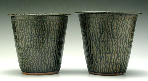Two stoneware butter crocks, runny dark