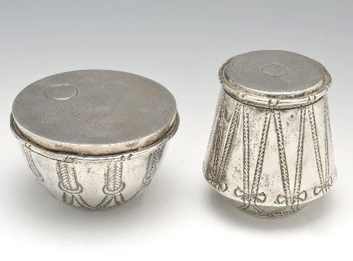 Lot of 2 Antique Wood Tool Chests.23 hrs LeftLot 2 Antique Brass Graduated Sleigh BellsMar 07, 2026Lot of 4 Silver Napkin Rings - 3.74 Oz. Troy23 hrs Left2pc International Silver Webster Wilcox Silver Plated Serveware2 days LeftVintage Brass Candlestick & Candle HoldersFeb 17, 2026INDIAN SILVER FLARING CUP AND CIRCULAR BOWL, Cup, H: 3 1/8 in. Wt. 4 troy oz.6 days LeftA matched pair of bronze rain drums from the Karen Hill tribe, 18th-19th century, Golden Triangle,Feb 24, 2026London 1732 / 1740 by John Tuite A matched pair of George II sterling silver waitersFeb 18, 2026London 1863 by Robert Hennell III A pair of Victorian sterling silver novelty saltsFeb 18, 2026Pictorial Birch Bark Box & (2) Additional Wood BoxesFeb 24, 2026A pair of George III crossbanded, checker strung and marquetry inlaid satinwood knife-boxes (2)(2) Oval Sterling BowlsFeb 24, 2026Tibetan Silver Plate Objects, 2Mar 26, 2026Pair of Teal Green Ceramic Koi Fish Barrel Garden Drum Stools7 days LeftSet of 2 silver coin tubes130 Lots AwayAntique Chinese Lacquer Painted Wood Barrel Drum w/ HandleFeb 23, 2026
