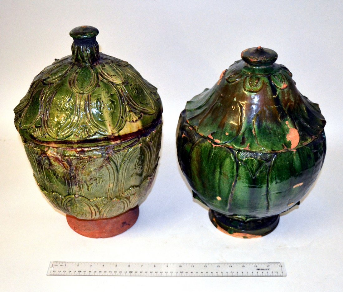 Two Terracotta Covered Urns