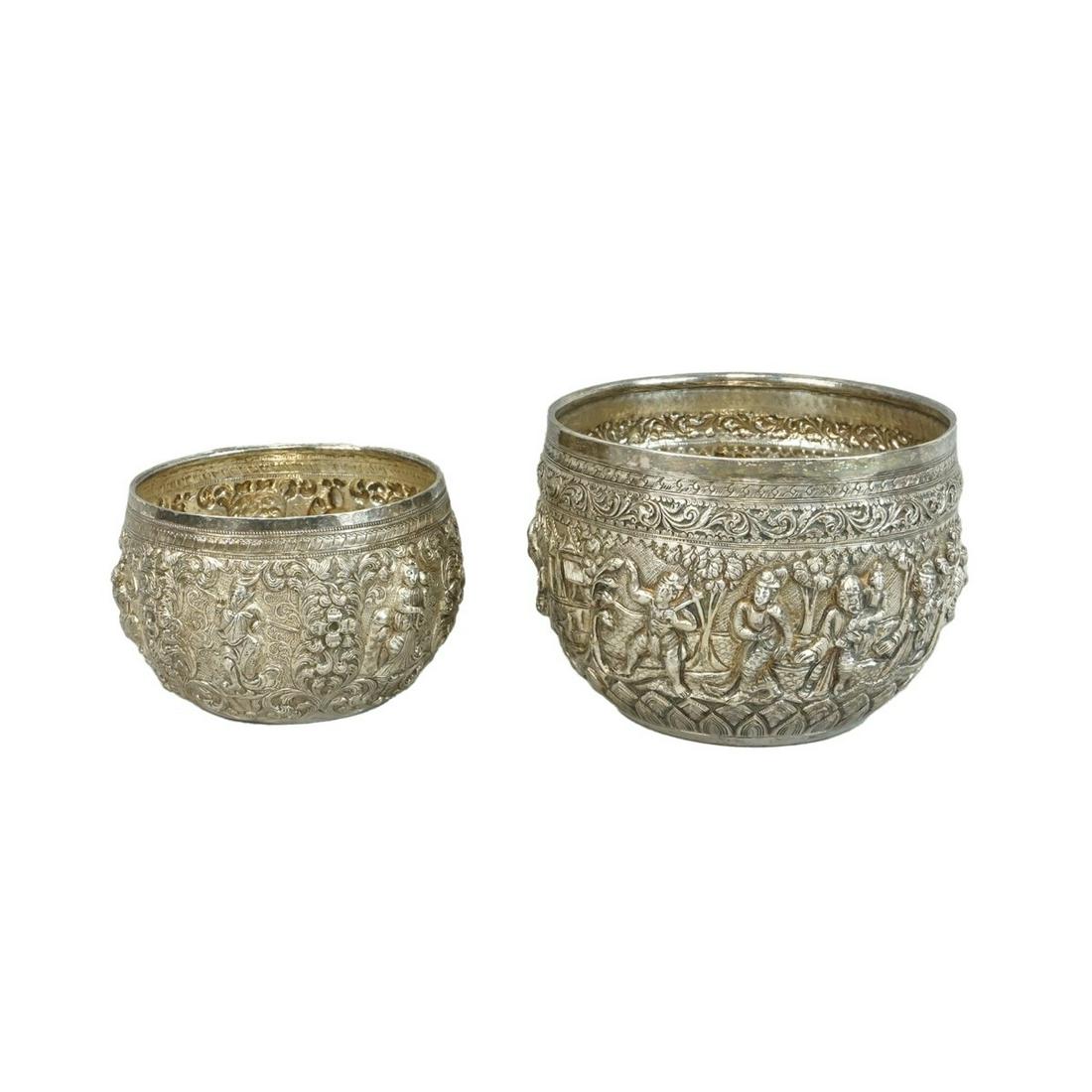 Chinese silversmith. Two small goblets richly decorated in relief with flowers and ornaments.Chairish Auctions4.5(10.4k)$120