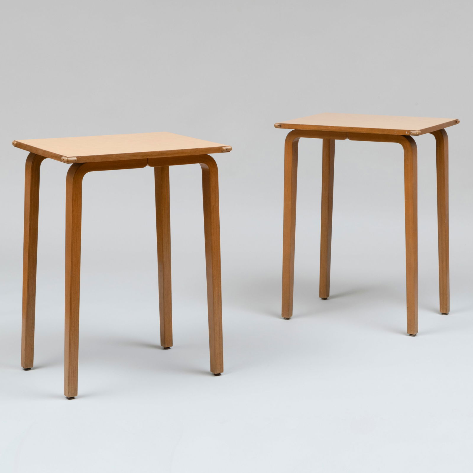 SoldMid-Century Modern Square Bent Wood Side Table by ThonetMid-Century Modern Square Bent Wood Side Table by Thonet. This is a great plywood side table. It has four bent, tapered legs. It has a plywood top with curved edges. Sticker on the bottom of table reaSee Sold Price