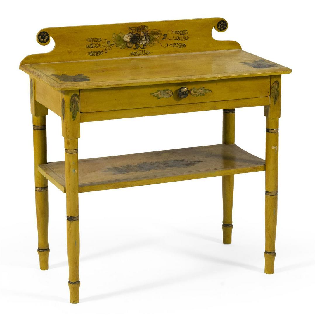 AMERICAN SHERATON PAINTED AND STENCIL-DECORATED PINE TWO-TIER WASHSTAND. 37.5"h. 17.85"w. 13.75"d.Amelia Jeffers, Auctioneers & Appraisers4.6(178)$70Mar 19, 2026