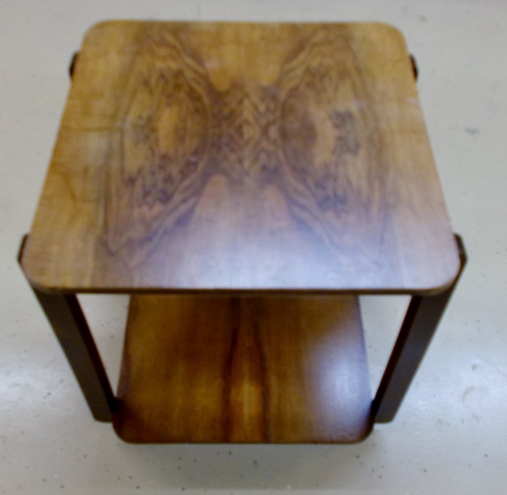 SoldContemporary Wooden Two Tier Chrome Side TableContemporary Wooden Two Tier Chrome Side Table. 28 inches x 23 inches x 23 inches.See Sold Price