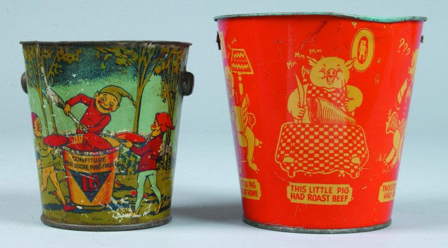 Two Tin Lithograph Sand Pails; one "Fruit and Suga