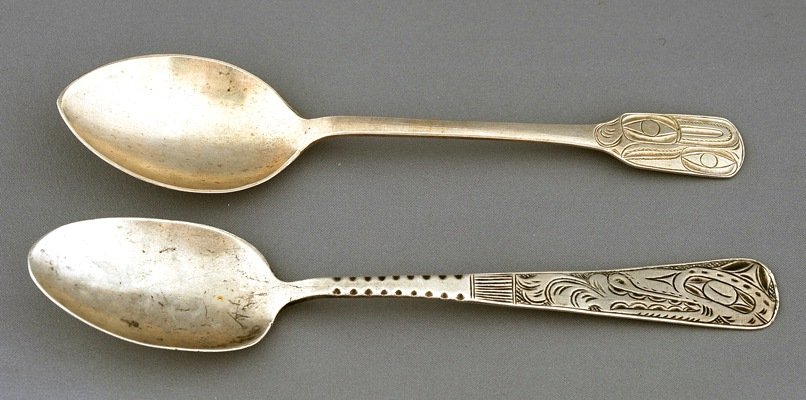 Two Tlingit Incised Silver Spoons; Ft Wrangle 1889 5