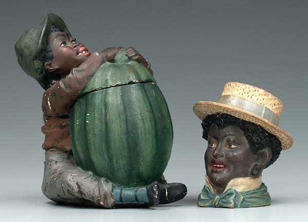 VINTAGE AUNT JEMIMA SALT & PEPPER SHAKERS LOT OF 4Feb 15, 2026Lot Of 2 Glazed Ceramic Table ItemsFeb 12, 2026A lot of two Belgian Torhout decorated earthenware objectsFeb 24, 2026Vintage Estate Cast Iron Figural Banks 2pc LOTFeb 05, 2026A composed lot of two Italian Napoli porcelain vase and figural group.Feb 24, 2026Chinese Porcelain LotFeb 08, 2026Lot of Six Antique Ceramic Tobacco Jars, Late 19th - Early 20th C.Feb 15, 2026Lot of Six Antique Ceramic Tobacco Jars, Late 19th - Early 20th C.Feb 15, 2026Lot of Six Antique Ceramic Tobacco Jars, Late 19th - Early 20th C.Feb 15, 2026Two Vintage Ceramic Music Boxes including Otagiri Courting Mice and Nice Taiwan Girl at PianoFeb 15, 2026Two Black Americana Cast Iron Banks. Including “Sambo” bank...Feb 19, 2026TWO UNUSUAL EARLY CANDY CONTAINERS1 day LeftVintage Tobacco Jar Black ManFeb 07, 2026Black Americana Figures (3), Way Down South, chalkware, one has partial sticker from Arkansas, someTWO PUMPKIN CHARACTER NODDER/ CANDY CONTAINERS2 hrs Left2 black memorabilia still banks. (1) Uncle Mose, (1) boy eating a watermelon. Both look to be old3 days Left