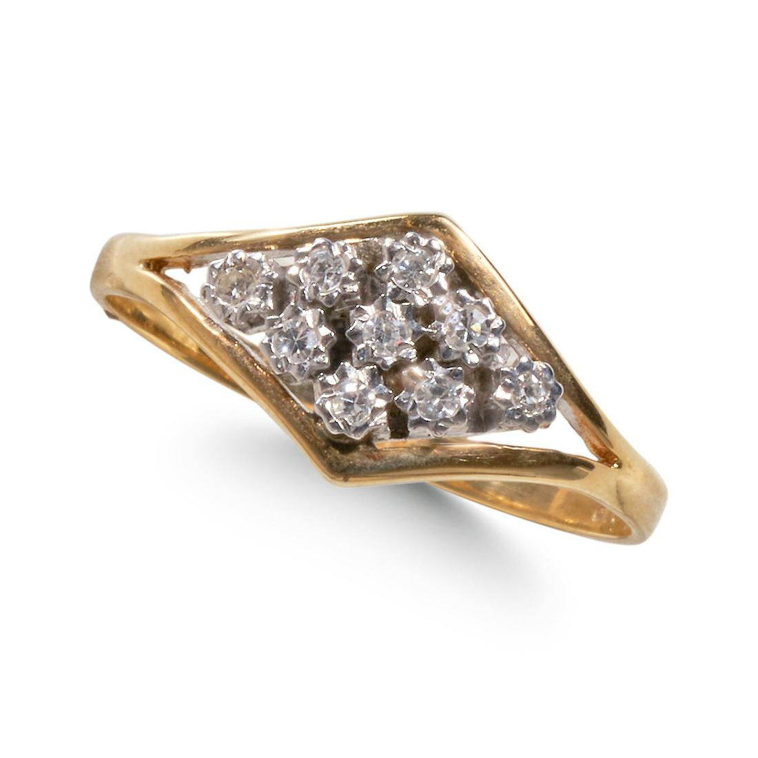 TWO TONE DIAMOND SET CLUSTER RING.
