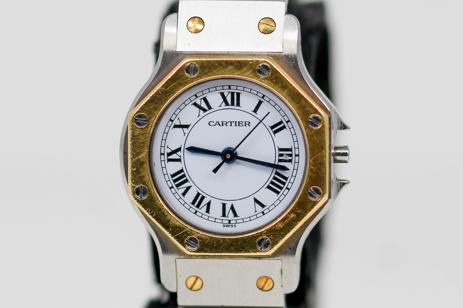Two-Tone Ladies Cartier Santos Wristwatch with Cartier International Gurantee Certificate *Crown