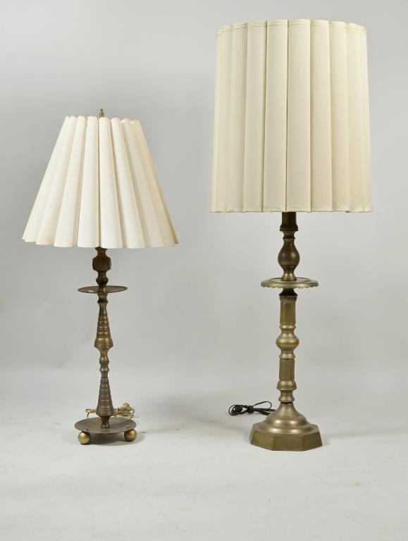 Two Turned Brass Altar Stick Lamps