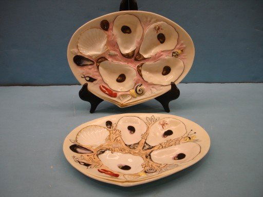 Two U. E. W. Porcelain Oyster Plates