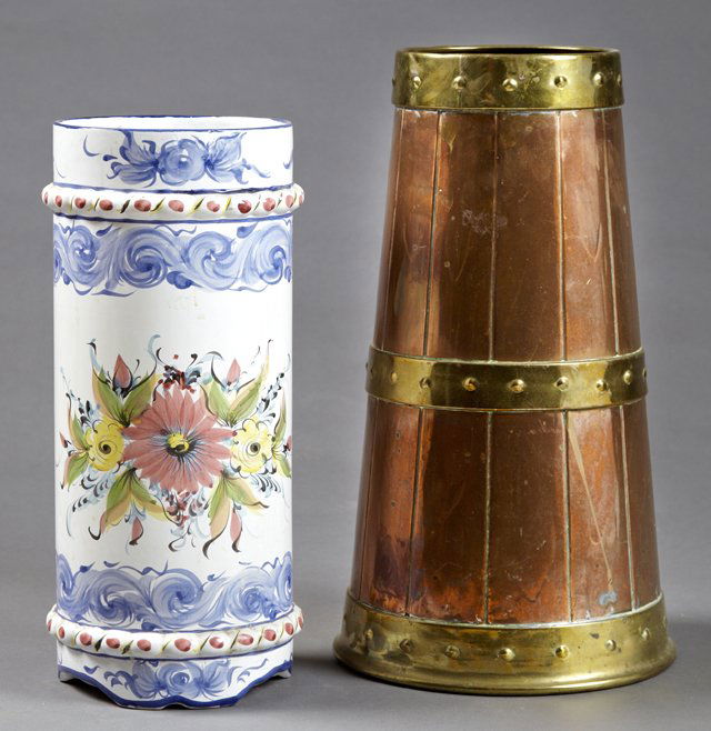 Two Umbrella Stands, 20th c., one ceramic from