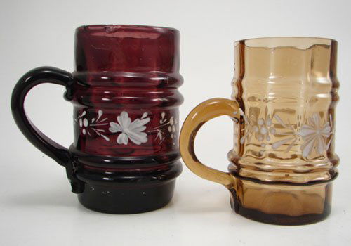 Two Victorian Blown Colored Glass Cups with appli