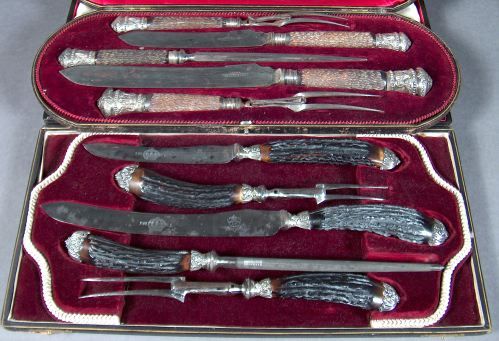 3 Boxed Carving Sets Early 20th C. to MCM era. English & American.May 03, 2026A BAMBOO CARVING DOUBLE-ELEPHANT-HANDLED VASE1 day LeftA MIDDLE EASTERN HORN HANDLED OMANI DAGGER. 32 cm long.6 days LeftTWO SETS OF STEEL FIRE IRONS, ONE SET GEORGE III, THE OTHER VICTORIAN, 18TH AND 19TH CENTURYApr 29, 2026A HORN HANDLED MIDDLE EASTERN JAMBIYA DAGGER. 30 cm wide.6 days LeftA Chinese water buffalo horn carving3 days Left19th Century Hand-Carved Bone Alligator Handled Culinary Carving SetA CHINESE TWIN HANDLED BUFFALO HORN TYPE CENSER. 11 cm x 12 cm.Apr 23, 2026A VICTORIAN HORN DESK STAND. 28 cm x 30 cm.6 days LeftA VICTORIAN HORN SILVER PRESENTATION HUNTING BEAKER. 13.5 cm high.6 days LeftDurgin Victorian Sterling Silver 2pc Roast Carving SetApr 22, 2026Two Sterling Silver and Steel Carving SetsApr 24, 2026Two sets of three Boston & Sandwich Comet 6&1/2 inch Glass Goblets5 days LeftFive Uncirculated Coin Sets and Two Proof Sets - New Zealand & AustraliaApr 30, 2026An Asprey & Garrard sterling handled caviar set with others2 days LeftAN EXCEPTIONALLY FINE HORN CARVING OF HEHE ERXIAN, WANLI MARK AND PERIOD2 days Left