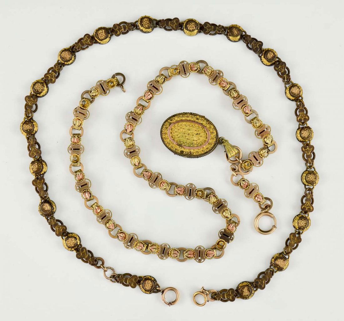 VICTORIAN GOLD FILLED JEWELRY LOT2 days Left10K Gold Locket With a 14K Gold ChainMar 10, 2026Antique Victorian Long Filigree Guard Chain Necklace 21K Yellow Gold, 39.06 GramVintage Antique Coin Butterfly Chain Necklace 22K Yellow Gold, 52.56 GramsLong 14K Gold (Tested) Neck ChainMar 10, 2026Thin Rounded Barrel Chain Necklace 14K Yellow Gold, 18.5 Inches, 1.1 mm, 3.58 GrA Pocket Watch ChainMar 03, 20262 Bhat 23k Yellow Gold 2.4mm Chain Necklace 29" 29g NG1855Mar 19, 2026VICTORIAN ERA OPAL & 10K YELLOW GOLD POCKET WATCH CHAIN/NECKLACEFeb 28, 202618K GOLD POCKET WATCH CHAIN2 days LeftANTIQUE VICTORIAN LONG FILIGREE GUARD CHAIN NECKLACE1 day Left14K gold chain. 19.5in length. Multiple hallmarks on clasp. 12.7 grams.Mar 01, 2026A 19th Century Bautte, Geneva Pocket Watch in 18K6 days LeftAntique 19th C Gold Filled Watch Chain w Dog ClipFeb 28, 2026Gold Filled Pocket Watch Chain With T Bar and LocketMar 07, 2026ANTIQUE VICTORIAN LONG FILIGREE GUARD CHAIN NECKLACEMar 07, 2026