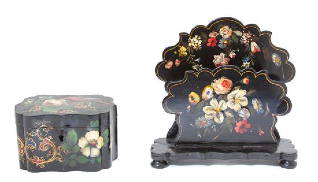 Two Victorian Polychromed and Ebonized Papier Mache