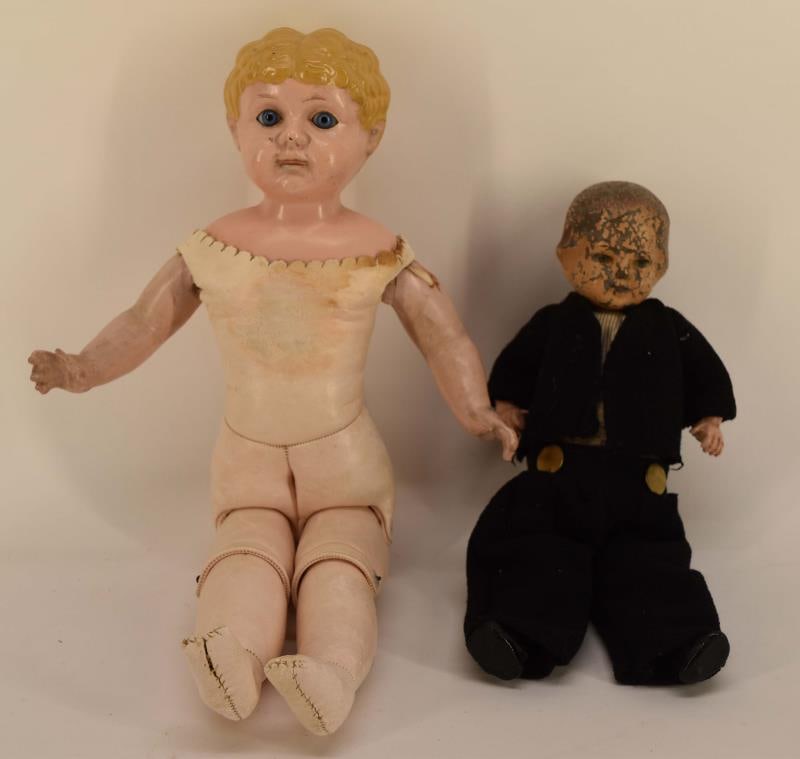 Two Vintage Metal Head Dolls