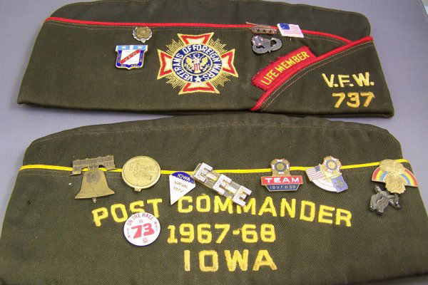 TWO VINTAGE VFW HAT WITH PINS