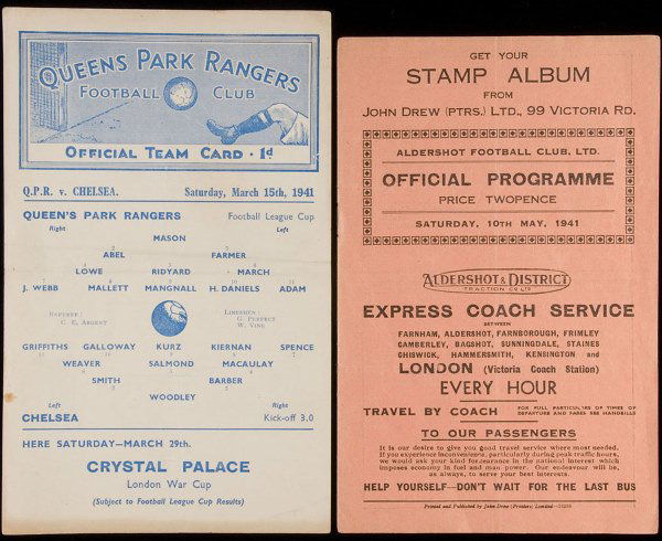 Two wartime Queen's Park Rangers programmes from s