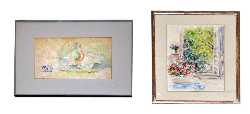 Two Watercolors, Conch Shell & Interior with Window