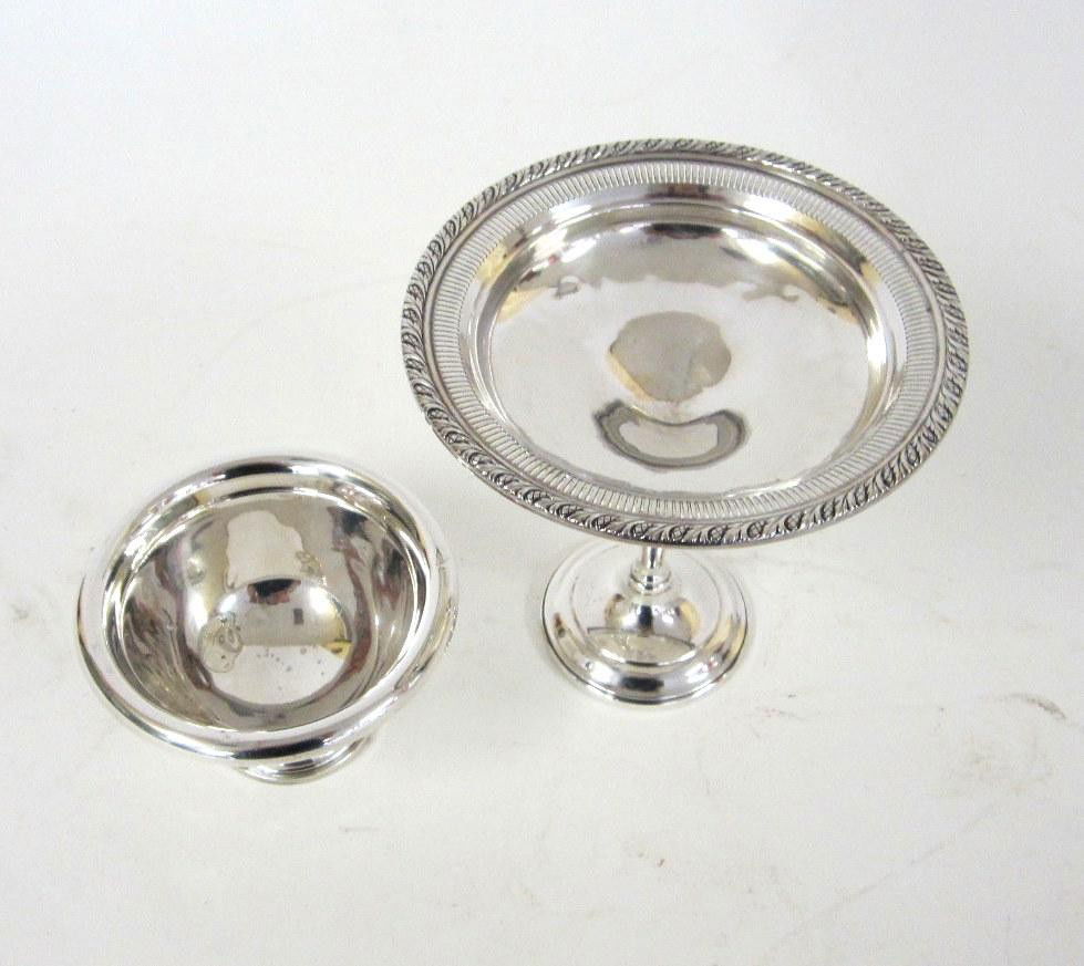 Lot of Weighted Sterling Silver Pieces5 days LeftLot of Silverplated Items17 hrs Left(17) COLLECTION OF STERLING, .800 SILVER & WEIGHTED STERLING TABLE ARTICLESFeb 22, 2026Wilcox and Gorham Silver Plate Serving Pieces Including Compote and Oval Tray5 days LeftTwo Sterling Silver Bowls and TraysFeb 21, 2026Wallace Sterling Silver Clam Shell Dish4 days LeftThree Sterling Silver Tableware Accessories5 days LeftVINTAGE STERLING SILVER TABLEWARE COLLECTIONFeb 21, 2026Two Sterling Silver Tableware Items5 days LeftEight Sterling Silver Miniature Urn From CupsFeb 21, 2026(3) STERLING SILVER WEIGHTED COMPOTESFeb 22, 2026Pair of Sterling Silver Pedestal BowlsFeb 28, 2026Georg Jensen Sterling Pair of Compote Bowl Dishes Made in Denmark2 days LeftCollection of Sterling Silver Holloware, 76 hrs LeftTiffany, Gorham Et Al Group of Sterling Bowls, 56 hrs LeftTwo Barker Ellis Silverplated BowlsFeb 16, 2026