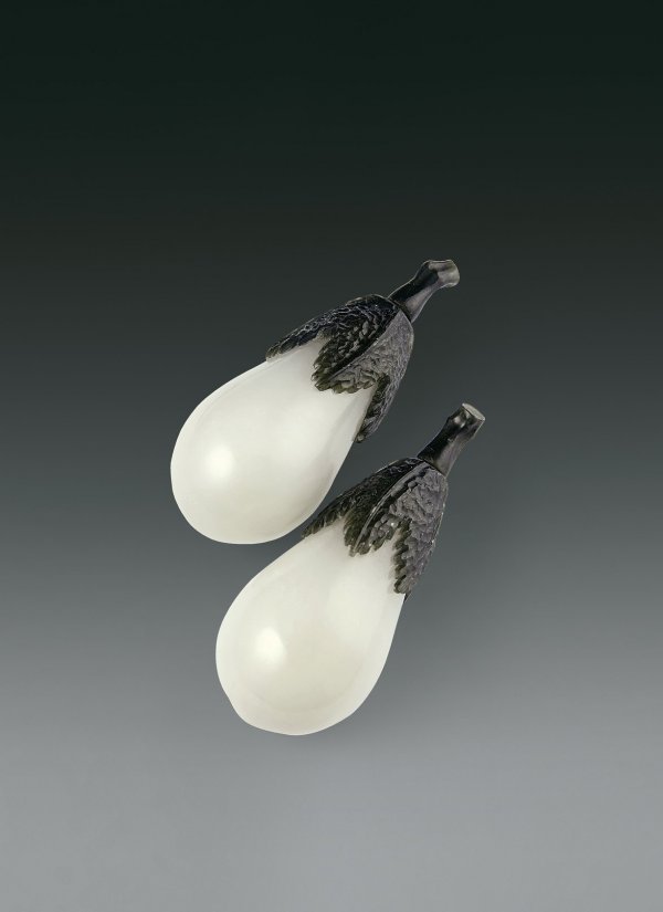Two White Jade Snuff Bottles in Eggplant Shape Si