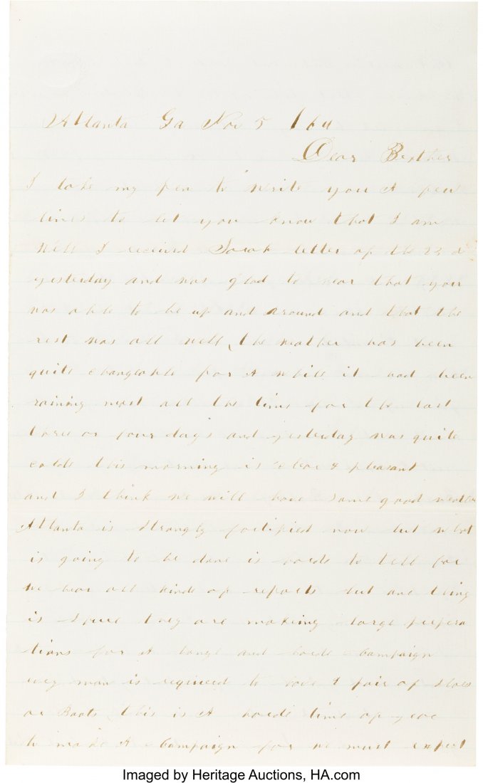 ROBERT E LEE AUTOGRAPH LETTER SIGNED.7 days LeftTwo Confederate Gettysburg letters - GA & NCMar 02, 2026ROBERT E LEE AUTOGRAPH LETTER SIGNED.7 days LeftFINE EARLY WARTIME ROBERT E LEE AUTOGRAPH LETTER7 days LeftDeath of William Youngblood Confederate EphemeraMar 02, 2026Maryland soldiers and Civil War lettersMar 02, 2026Abraham Lincoln visits New Jersey Regiment, etc.Mar 02, 2026Abraham Lincoln Handwritten and Signed Notation, Wartime3 days LeftMass Letters Patriotic Envelope, Battle Accounts etc.Mar 02, 2026G.W. Aughenbaugh Letters - Deserters coming, etc.Mar 02, 2026Pvt. William G. Wadleigh MA 19th Inf. & other lettersMar 02, 2026Jefferson Davis, Fort Sumter, Lincoln InaugurationMar 02, 2026Sgt. William A Hosford 2nd CT Heavy Artillery, letterMar 02, 20261858 pre-war Augusta, GA - Confederate soldierMar 02, 2026GA & TN: William H. Davies Georgia & other lettersMar 02, 2026WARTIME ROBERT E LEE AUTOGRAPH LETTER SIGNED.7 days Left