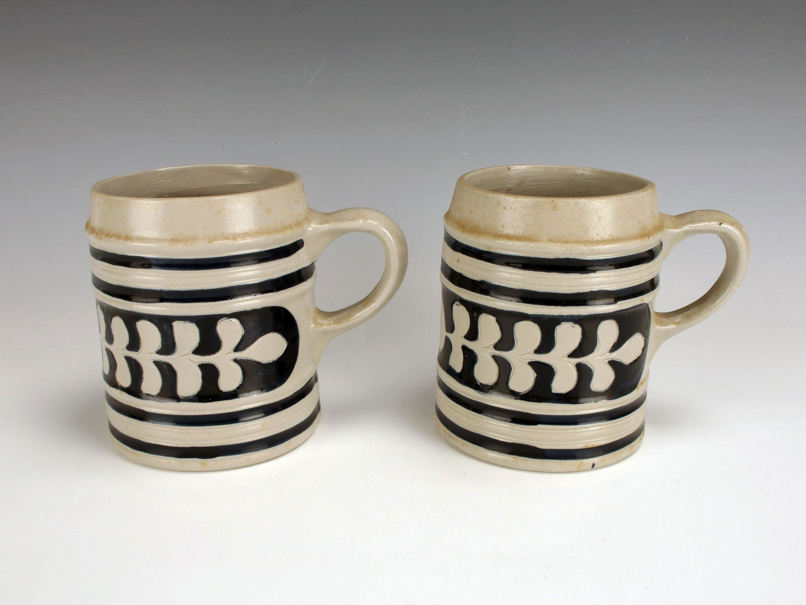 Lot of 2 antique stoneware cobalt dec mugs - 4 1/2" tall x 3 1/2" diam & 5" tall x 3 1/2" diamFlying Pig Auctions4.7(395)$425(4 bids)4 days Left