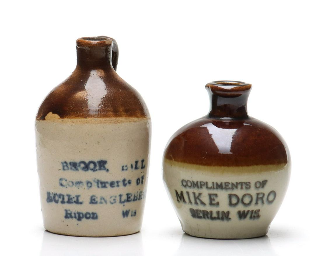 TWO WISCONSIN STONEWARE MINI JUGS
